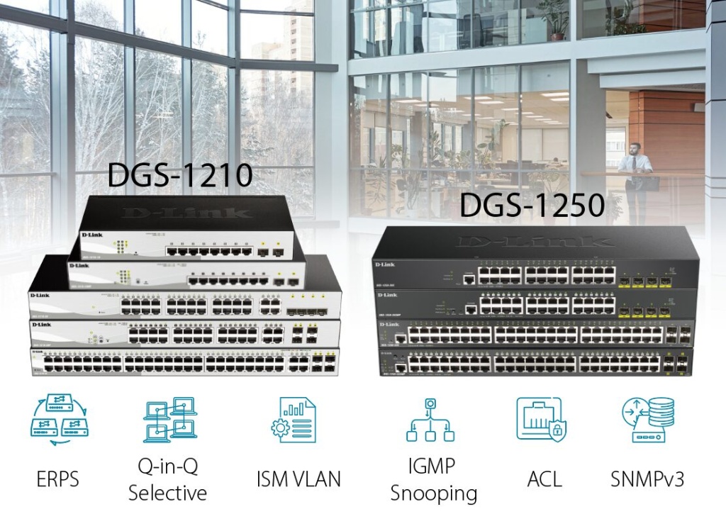Москва, Россия, 22 декабря 2025 года. Компания D-Link объявляет о начале продаж коммутаторов серий DGS-1210 и DGS-1250 с новым программным обеспечением. Обновленное программное обеспечение разработано на основе актуальной аппаратной платформы, учитывает перспективные требования региональных и федеральных операторов связи, корпораций и госструктур, существенно расширяет функциональные возможности коммутаторов при сохранении их текущей стоимости. Решение предназначено для использования в корпоративных и телекоммуникационных сетях, предъявляющих повышенные требования к адаптивности, стабильности работы и отказоустойчивости оборудования.